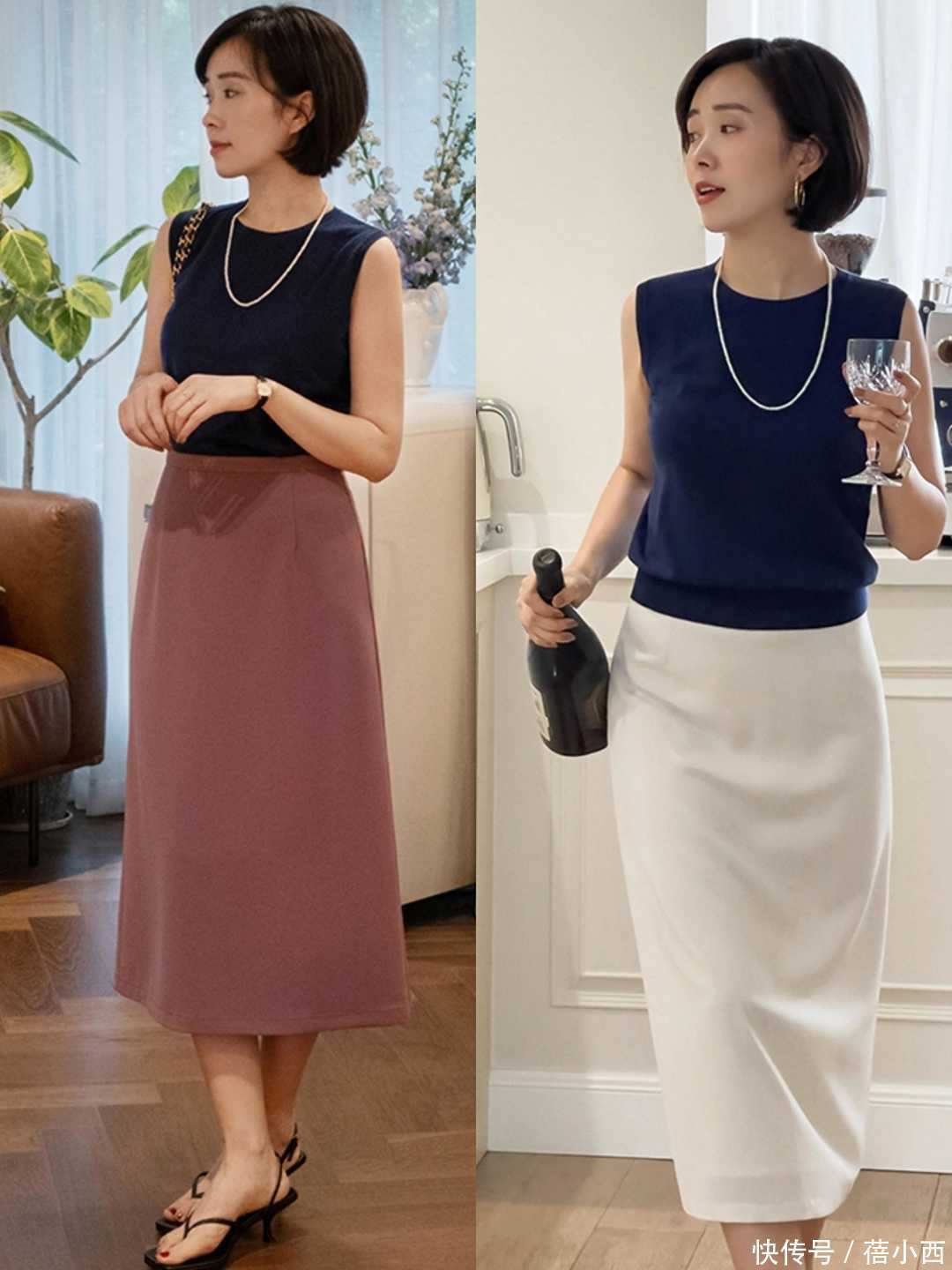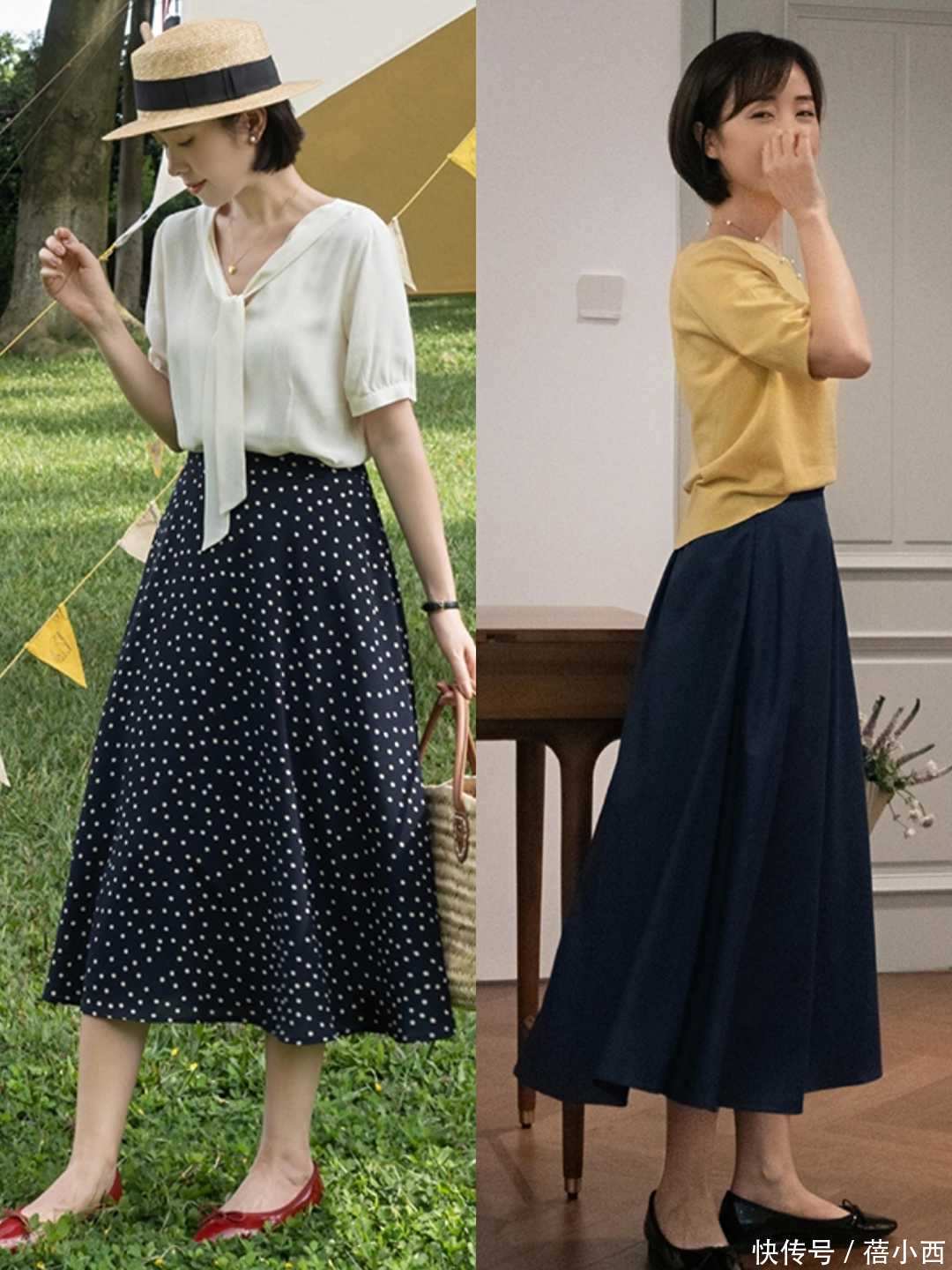 露脚踝的方法还挺多的,像这种过膝半身裙大概是九分直筒裤齐不错把脚踝刚好显现来,况兼遮住了咱们的大腿,也不会难受。